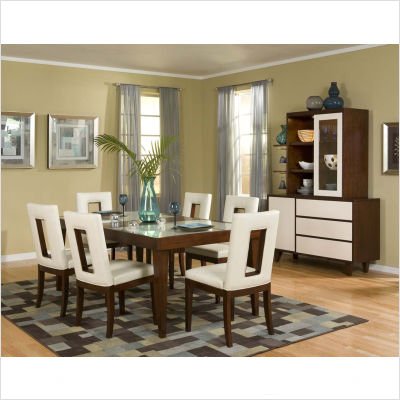 Enzo Dining Table Series Features: -Set includes dining table and 4 side chairs. -Enzo collection. -Combination of cherry and white finish. -Constructed of solid hardwood and cherry veneer. -French and English dovetail work. -Table extends to 78'' with 1-12'' extension. -Side chair with polyurethane seat upholstery. -Optional server top features touch-light. -Optional server base and top bar are optional. -Assembly required. -Najarian Furniture provides one year limited warranty against manufacturer's defects. Read more...