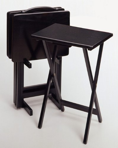 Perfect for dinners in front of the television, these TV Tables by Winsome Wood offer smooth, broad tops that can easily hold a large meal. Sold in a set of 4, these solid wood TV trays come equipped with an upright stand that stores them discretely when not in use. The trays easily pull out for stability and fold flat for easy and compact storage. Also great for holding drinks, snacks and so much more. Read more...