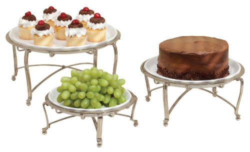 Free Shipping InterDesign York Round Buffet Stand, Set of 3, Satin Nickel/White @ Amazon.com