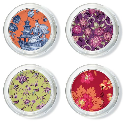 Free Shipping Mandarin Set of 4 Glass Coasters in Assorted Floral Styles @ Amazon.com